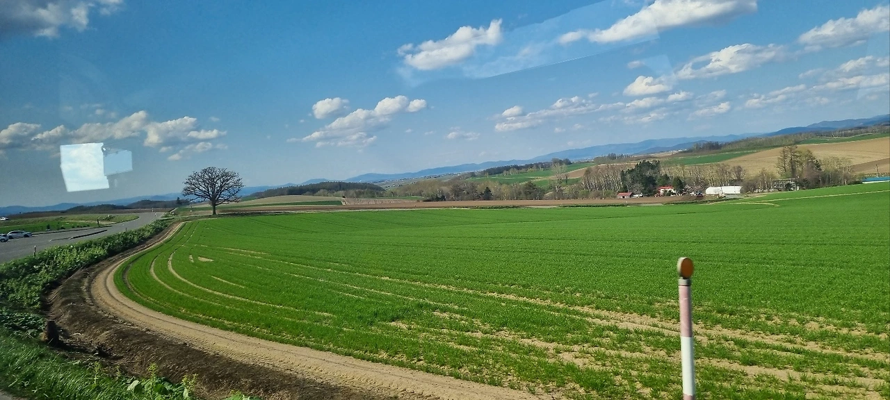 다음 날 아침도 온천으로 시작했다. 조식 뷔페를 간단히 마친 후, 예약한 버스 투어에 올랐다. 창밖으로는 만년설 덮인 산들이 스쳐 지나갔다. 봄과 겨울이 공존하는 풍경 속에서 우리는 후라노와 비에이로 향했다.