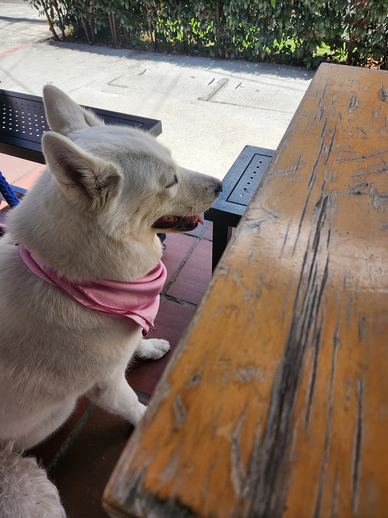이 글을 쓰고 있는 동안 귀여운 멍멍이가 주인을 따라 내 옆에 자리를 잡았다. 그래서 또 멍멍이 주인과 인사를 했다.