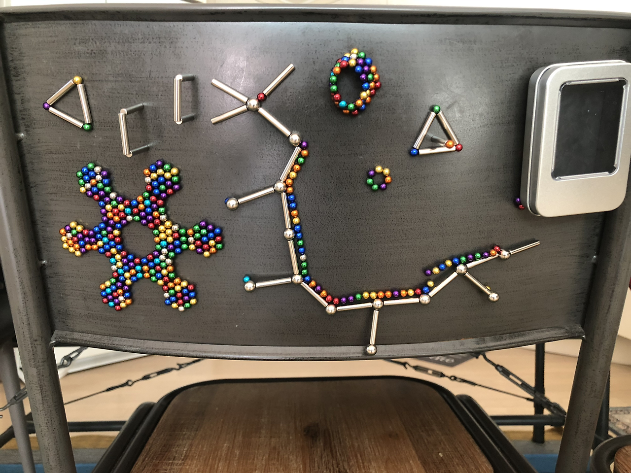 아이들이 자석 구슬로 의자 뒷면을 장식했다. 두 녀석의 개성과 취향이 고스란히 드러난다. 우리의 삶도 마찬가지가 아닐까 생각해 본다. 내가 끌어들이는 모양 그대로 하루의 그림을 펼쳐낸다.
