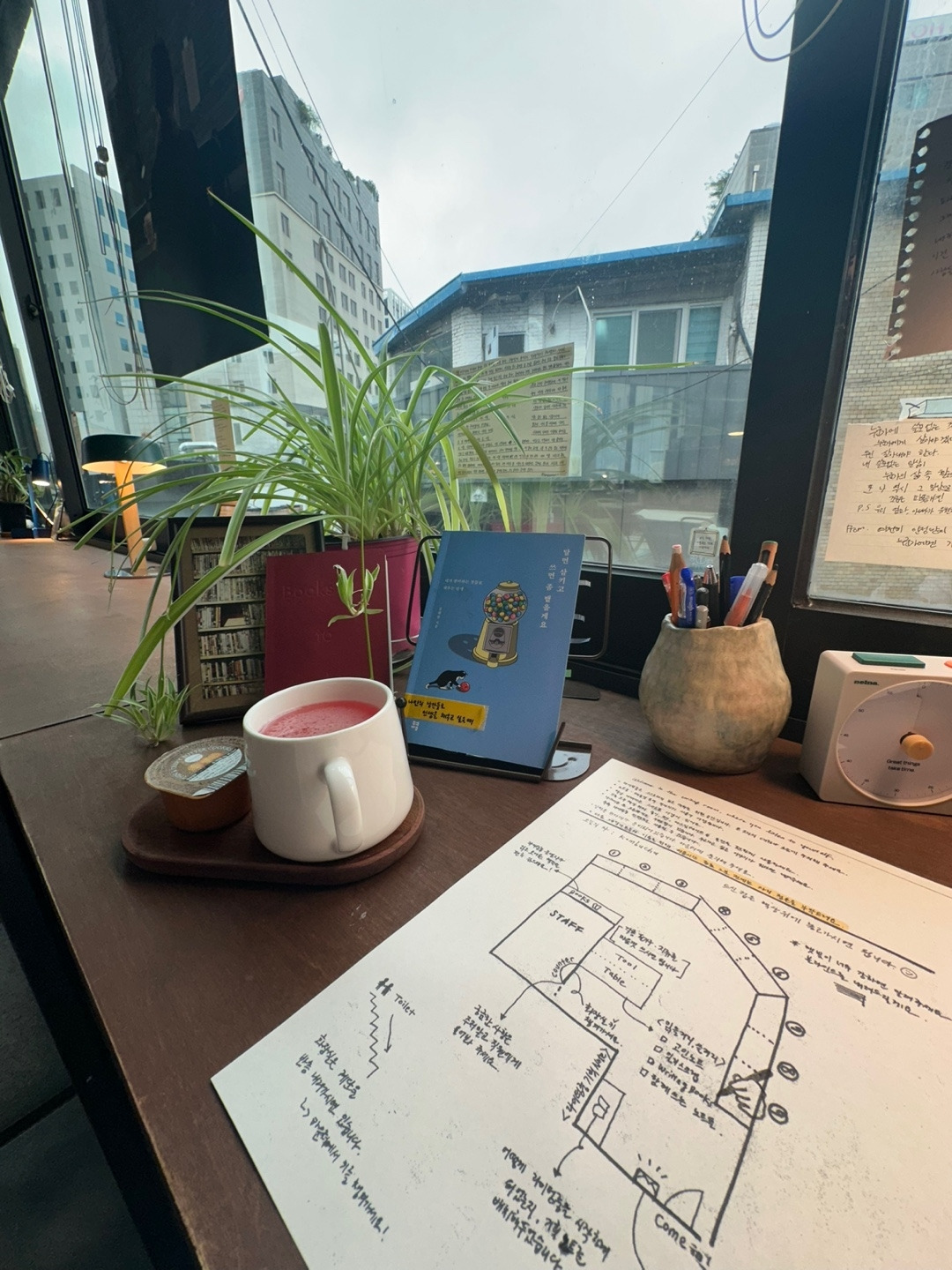 아, 예약을 안 했더라면 저곳에서 오천 원의 커피와 무제한으로 제공되는 전기를 끌어다 쓰며 노트북과 핸드폰으로 어지럽고 화려한 시간을 보낼 텐데 말이지.