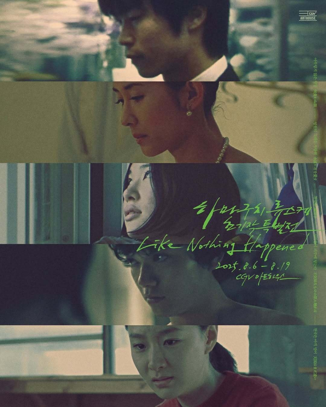 CGV 아트하우스에서 진행되는 '하마구치 류스케 초기작 특별전: Like Nothing Happened'는 데뷔작 <아무렇지 않은 얼굴>부터 국내에 정식 개봉되지 않았던 초기작 5편을 상영합니다. 본래 8월 6일부터 19일까지로 예정되었던 상영 기간이 연장되어, 적어도 며칠 더 극장에서 이 작품들을 만나볼 수 있게 되었습니다.
