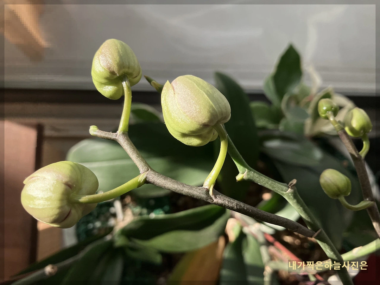 작년에 선물로 들어왔던 호접란이 여러 개의 봉오리를 올렸습니다.