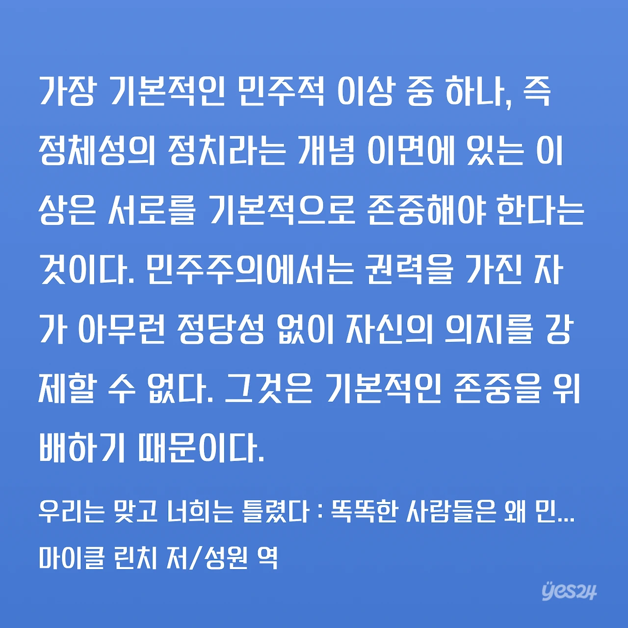 그리고 민주주의의 가장 기본적인 요소는 '존중'이라고 강조한다.