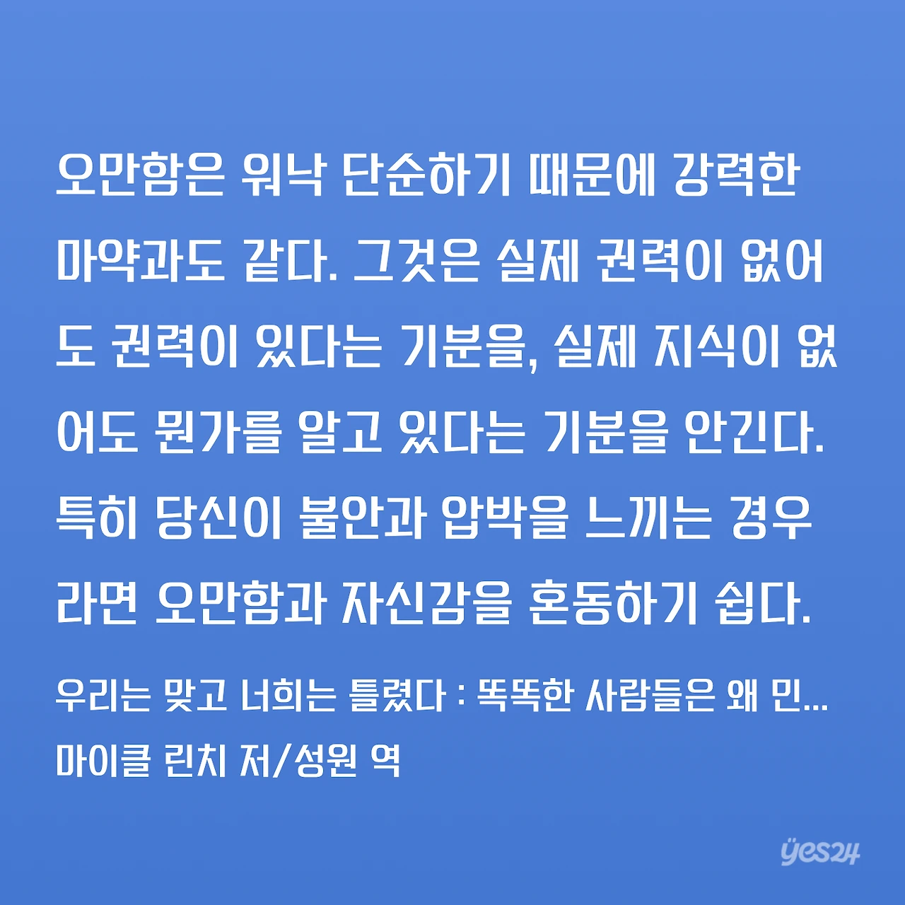 글쓴이는 그런 지적 오만함은 보수와 진보라는 진영과 관계없이 나타날 수 있는데