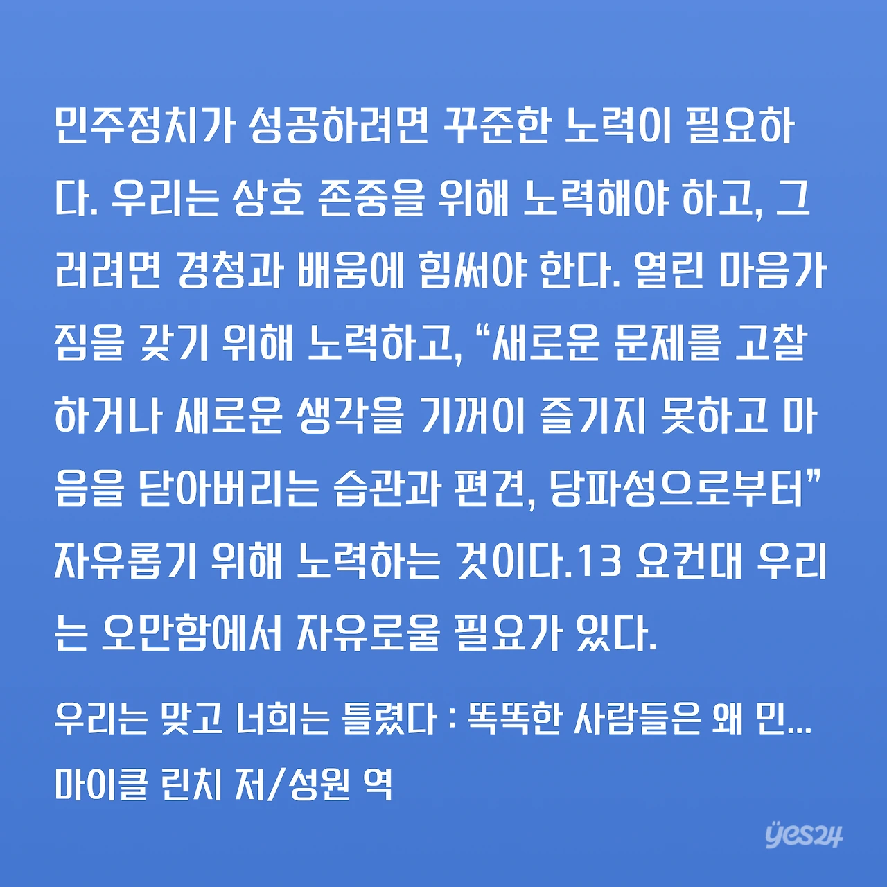 사람들에게 판단의 과정 없이 나의 정치적 신념을 갖게 하는 것은 민주적이지 않으며