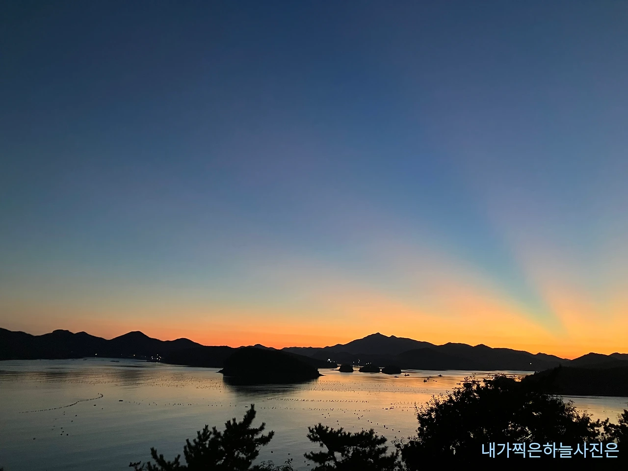 석양에서부터 선명하게 하늘색이 뻗쳐 있었는데 이런 게 오로라 현상인가? 싶기도 했다.