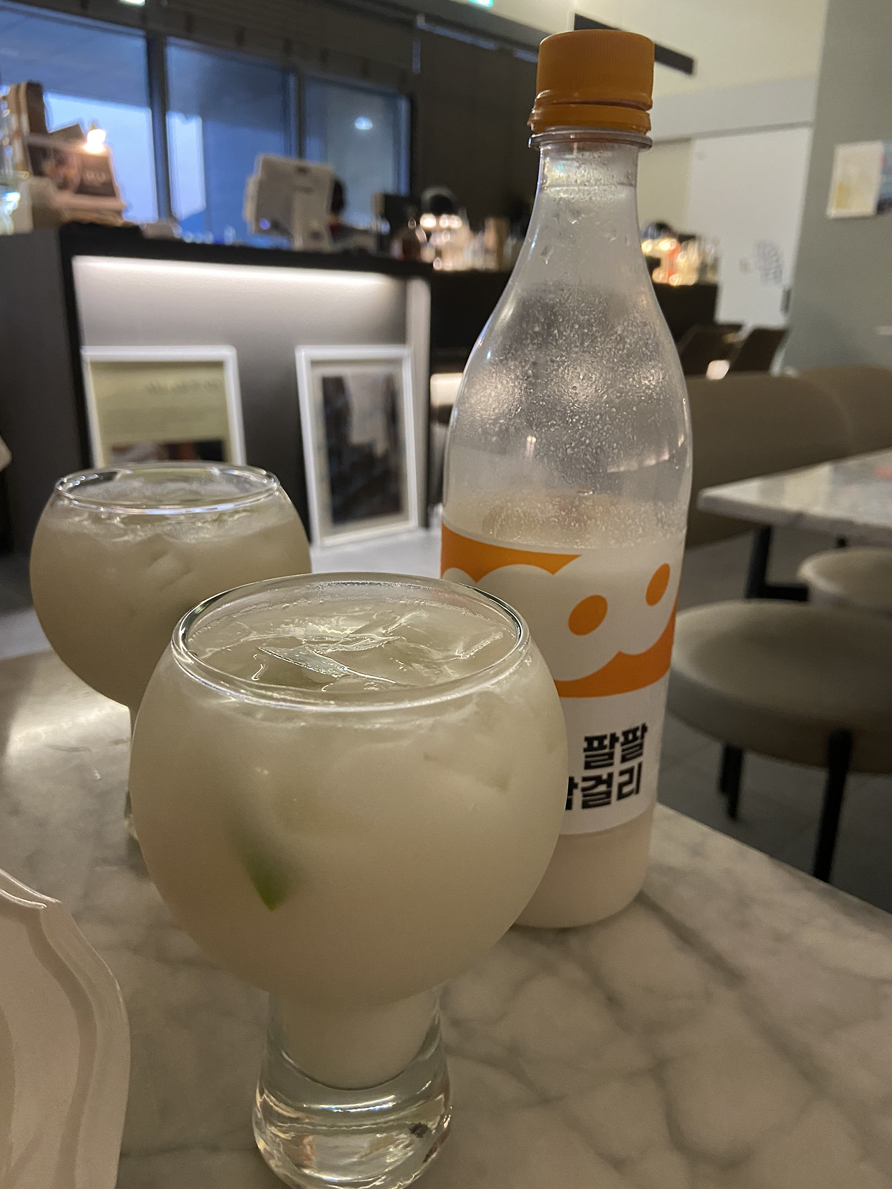 토닉워터와 막걸리를 섞어, 라임 조각을 넣고 완성하는 꽤 간단한 레시피였는데, 막걸리만 마시기 부담스러운 술찌 친구들에게도 추천하고 싶은 맛이었다. (최고..!)