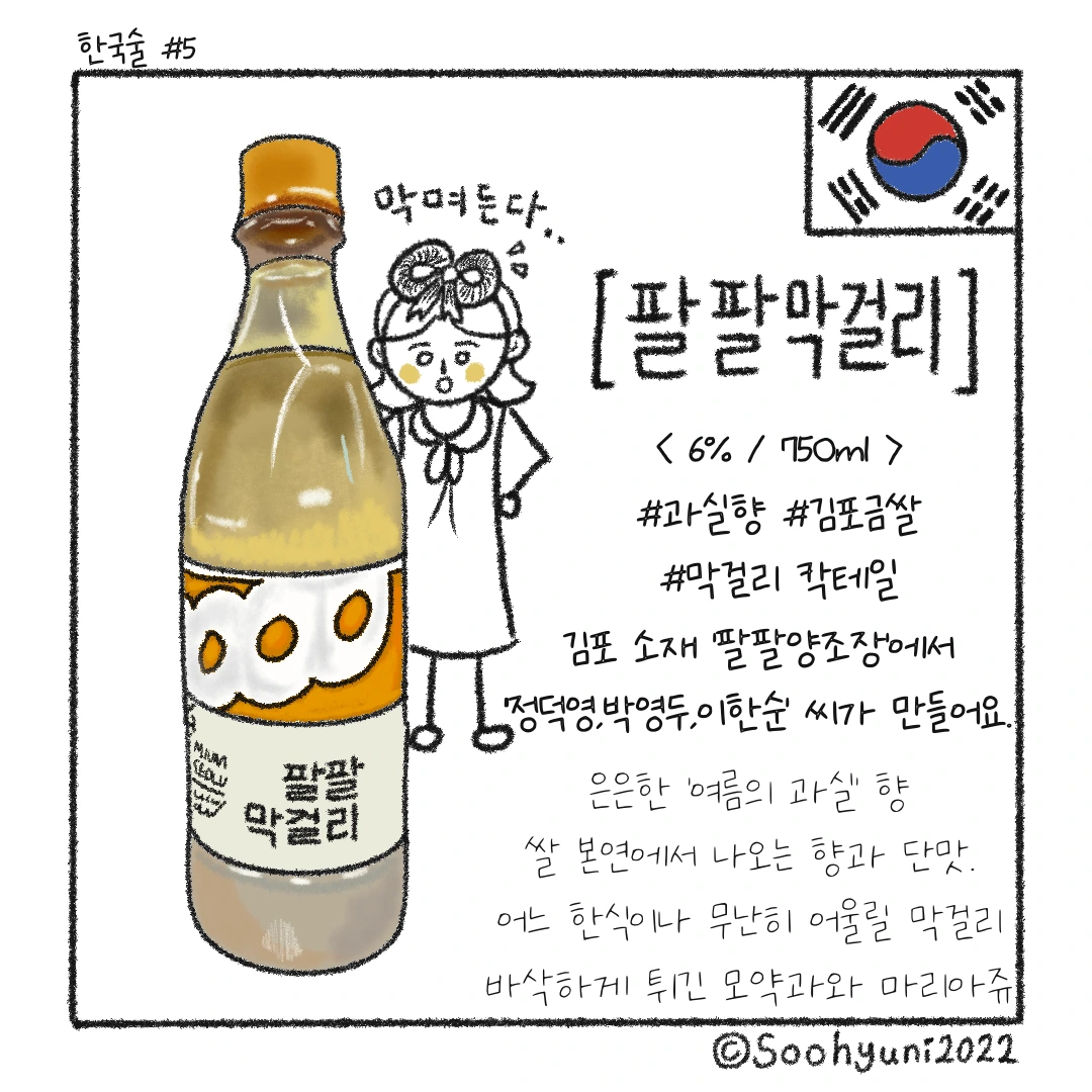 전체적으로 마시기 쉬운 맛인, 이 팔팔 막걸리는 어느 한식이나 가볍게 곁들이기 좋을 것 같은데, 개인적으로는 바삭한 모약과와 함께 여름에 평상에 앉아 시원하게 마시고 싶다는 생각이 든다.