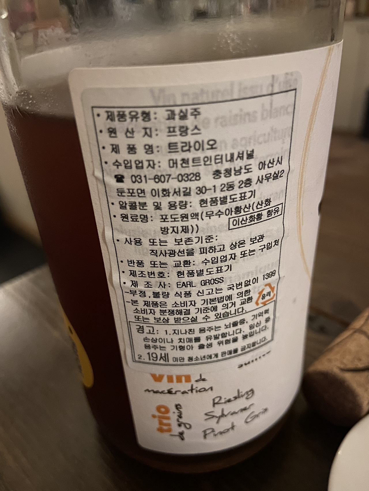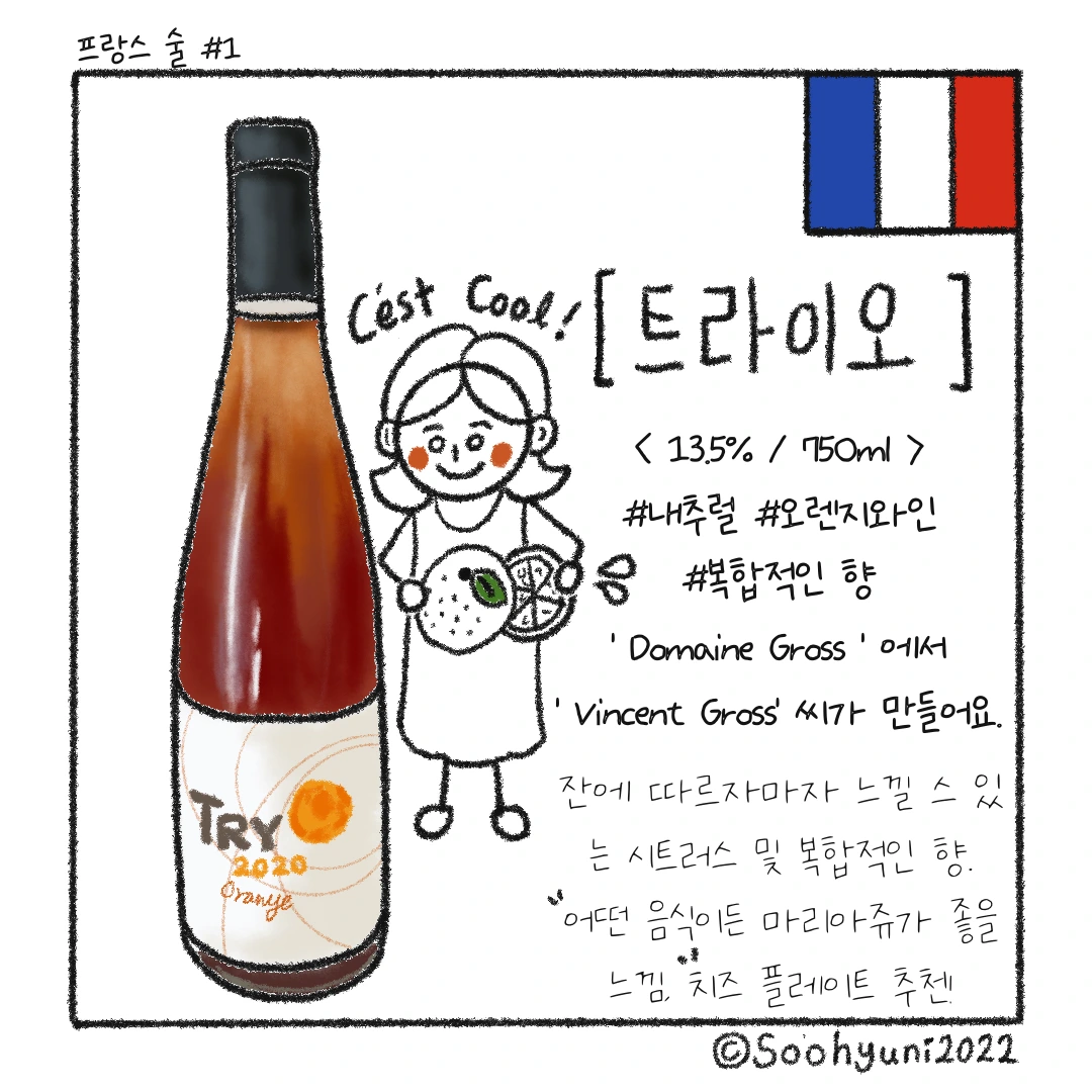 현재는 그 아들 Vincent 씨가 운영하고 있는 듯하다. 이 트라이 오도 ‘천재 생산자’로 불리고 있는 Vincent 씨의 손에서 나왔다는데, 이 분은 전부터 오렌지 와인을 만들려는 시도를 계속해왔으며, 스킨 콘택트 기법을 사용하셔 와인을 만드신다고. (탄닌감이 꽤 느껴지는 게 스킨 콘택트 맞는 듯)