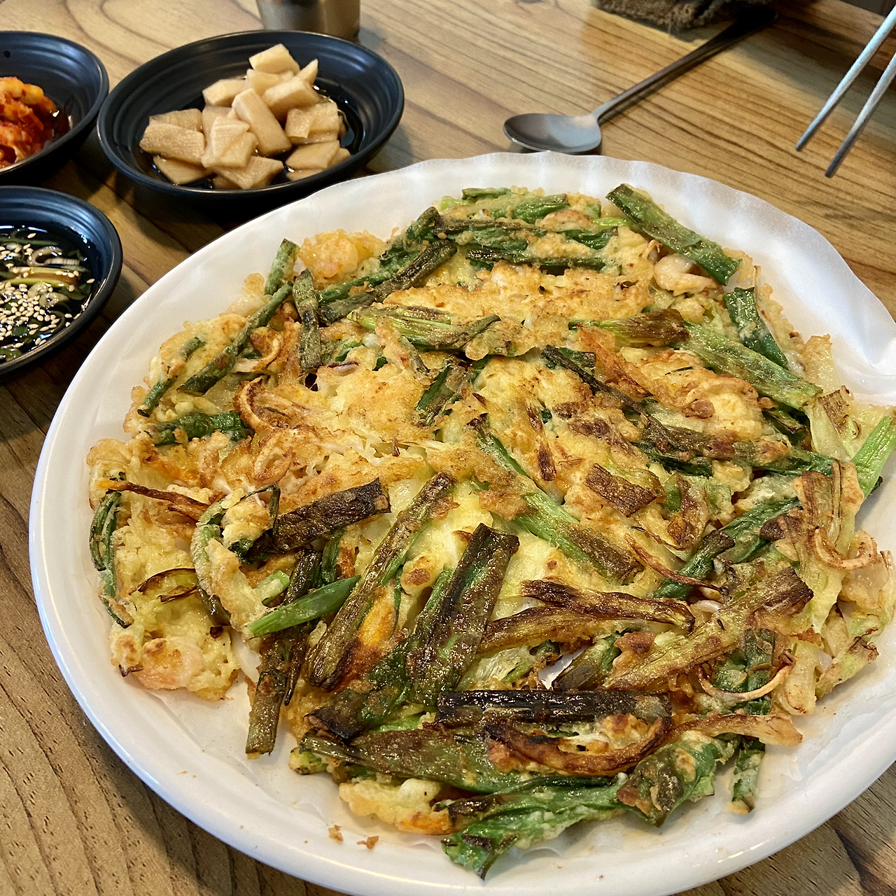 해물파전이나, 푸른 채소를 넣어 기름을 넉넉히 두른 전과 마리아쥬를 추천한다. 같이 먹으면 은은한 산미가 음식 맛을 깔끔하게 잡아 줄 수 있을 듯.