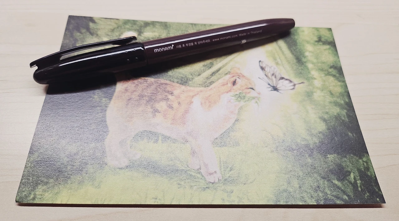 개떡을 먹고 나서 글씨에 집중하고 있는데 좀 늦는다고 하신 선생님이 오셨다. 박스 안에서 모나미 붓 펜을 꺼내신다. 지난주에 동영상에 모나미붓펜이 있었는데 강사님이 너무 잘 쓰셔서 주문하셨던 것 같다. 하하 그때 마침 어르신이 붓펜을 다 쓰셔서 쉬고 계셨는데 어찌 알았는지 모나미 붓 펜으로 캘리를 쓰시게 되었다. 우연인지 필연인지!!