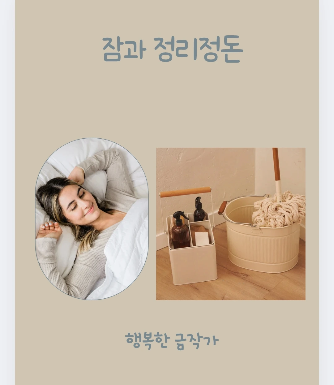 잠과 정리정돈은 살아가면서 꼭 필요한 존재이다. 정리정돈이 잘 된 방에서 자고 싶은가? 잠을 잘자고 정리정돈을 할것인가? 잠을 잘자고 정리정돈 잘 된 곳에 생활하고 싶으신가?