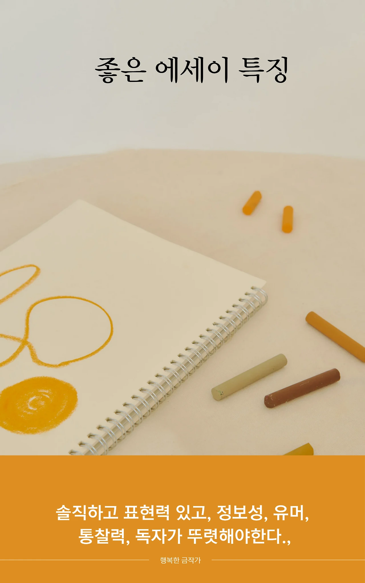 좋은 에세이를 쓰기 위해서 몇 가지가 나의 글에 타당한지 글을 쓸 때 다시 유념 있게 봐야 하는 상황이다.