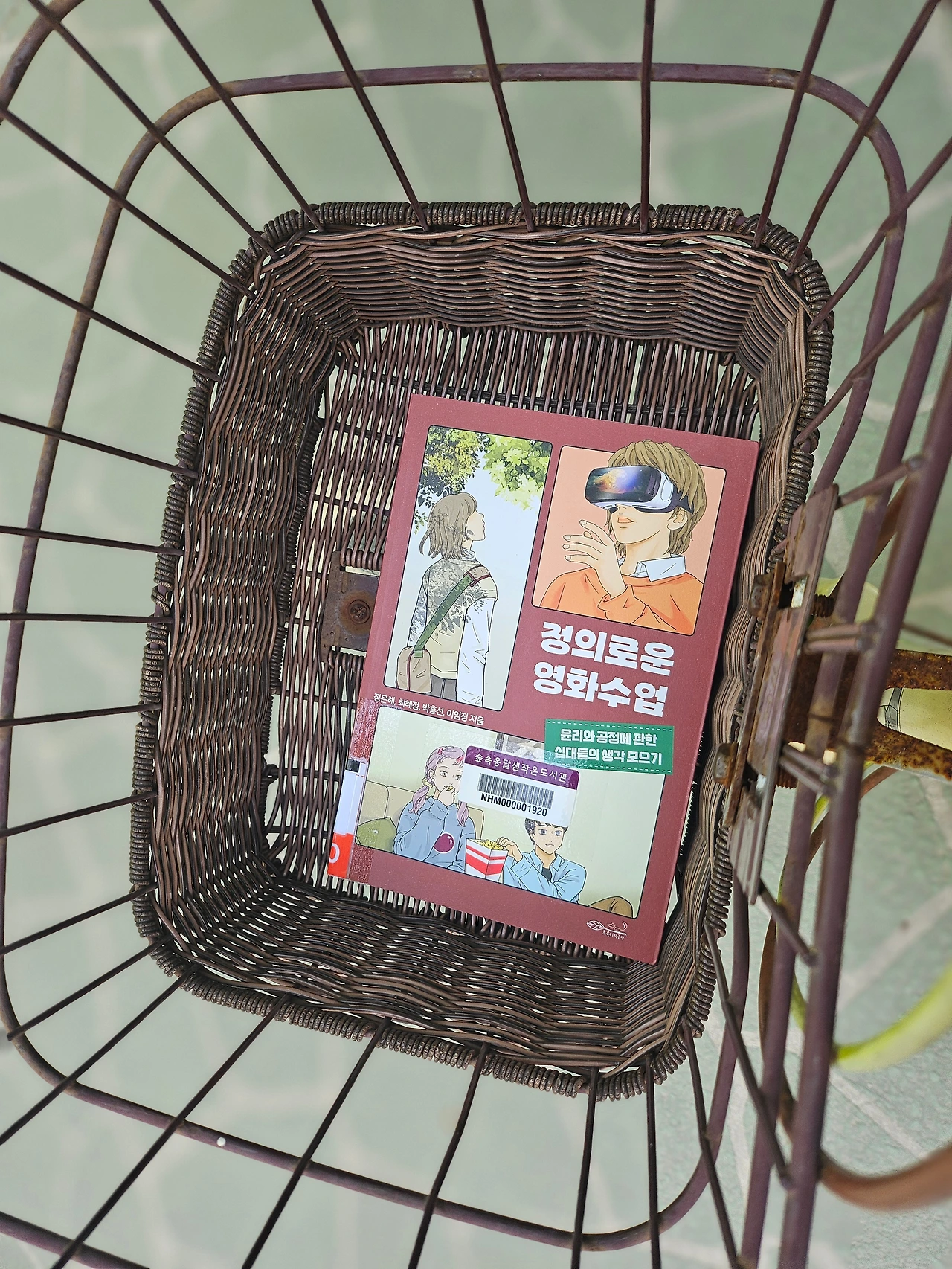 자전거 타고 바구니에 놓인 책을 읽고 픽~ 웃었다. 그리고 오늘 너를 글감으로 생각하고 자전거 페달을 힘차게 굴렸다. 굴러가는 페달 속에서 나의 일 하나가 술술 풀려서 바람에 내 몸을 맡기고 출근을 하였다.