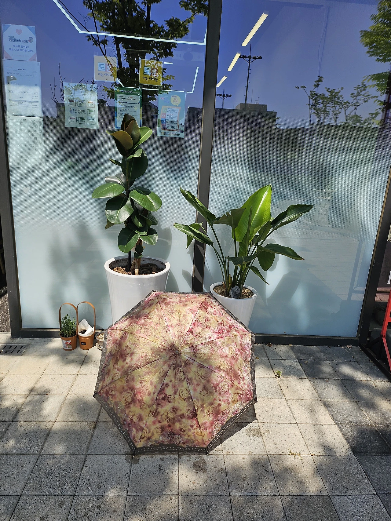 우산을 펴고 가는데 어디선가 쾌쾌한 냄새가 난다. 이게 무슨 냄새일까? 곰곰이 생각해 보니 까망이가 신발장에 들어갔다 온 것이 생각이 났다. 그리고 오줌을 싼 흔적이 있어서 닦은 적이 있었다. 그 냄새가 배어서 일까? 찝찝한 냄새는 양산을 쓰는 동안 지울 수 없었다. 그래서 센터에 도착해서 소독제로 양산을 깨끗하게 샤워를 시키고 헹궈냈다. 그리고 햇볕으로 일광욕을 시키고 나니 금세 양산은 말랐다. 그래서 양산을 코에 가져다 보니 냄새는 없어졌다.