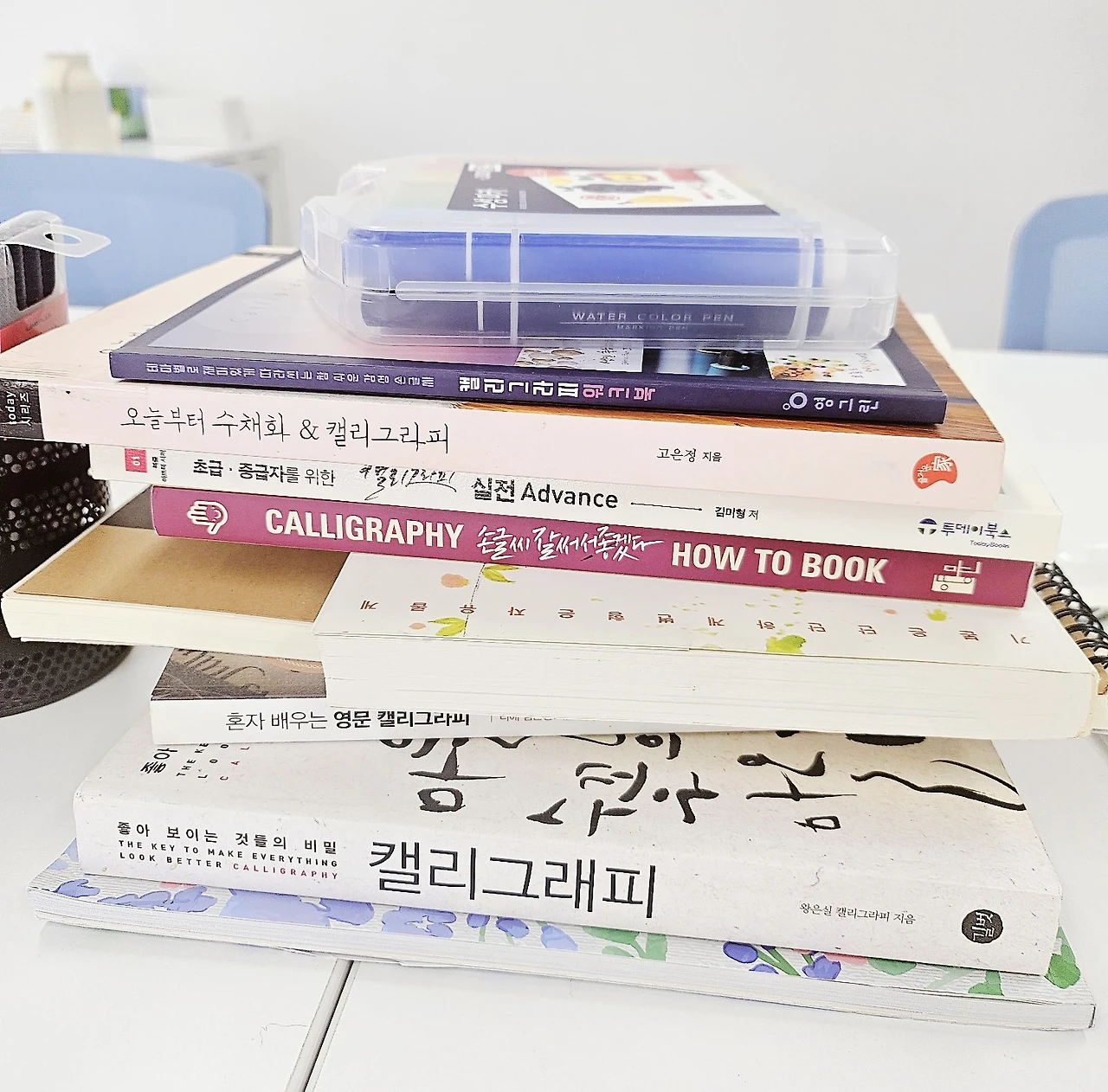 전에 캘리그라피하신 분이 기증하고 가셨다고 한다. 이렇게 자료가 많다니 너무 기분이 좋아진다^^ 어떤 책부터 글을 써볼까 책을 훑어보는데 설렌다. 언젠가 나도 쓸 수 있을 것 같다는 희망으로 풍선처럼 두둥실 성장해 나아가기를 비나이다!