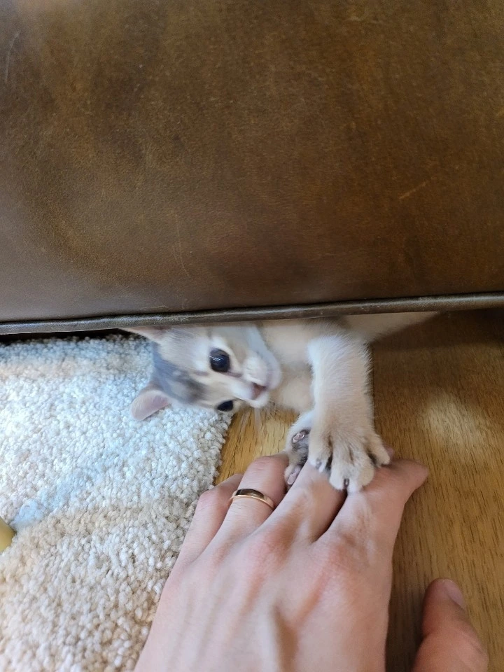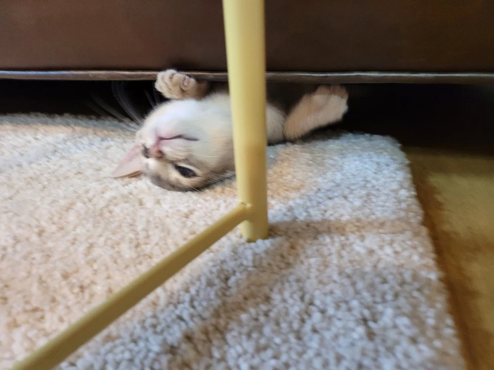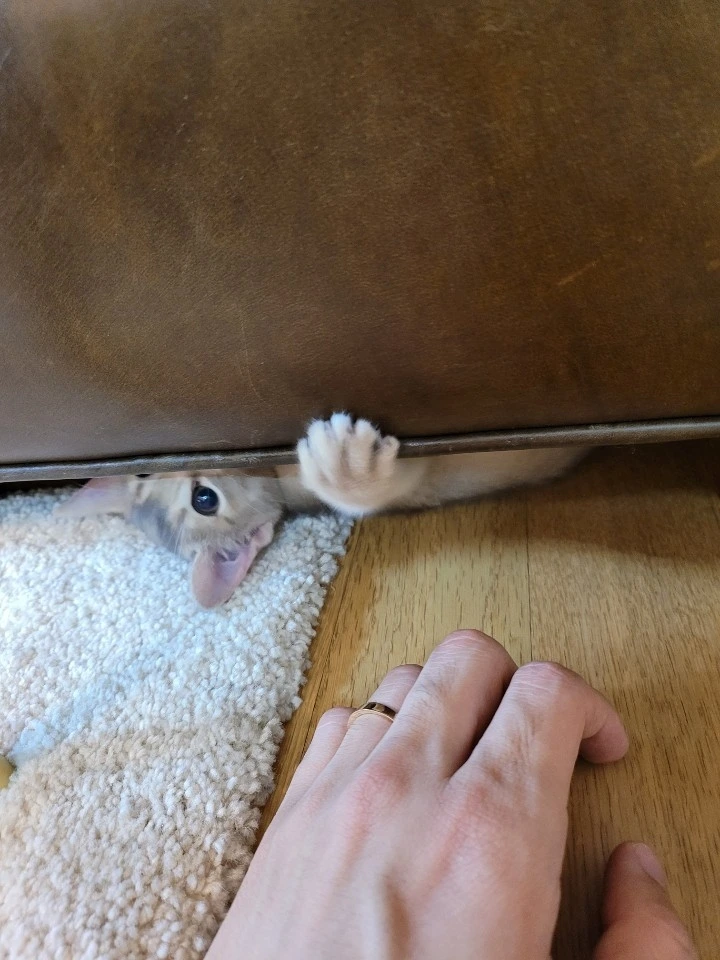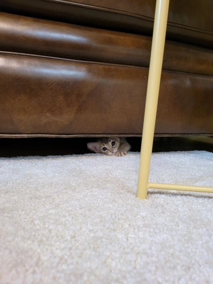지금은 훌쩍 자라서 소파 밑엔 못 들어가지만,