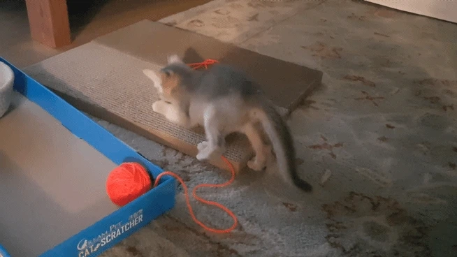 실뭉치를 꾹꾹 누르고, 끈을 쫓아다니느라 숨이 찼을 텐데