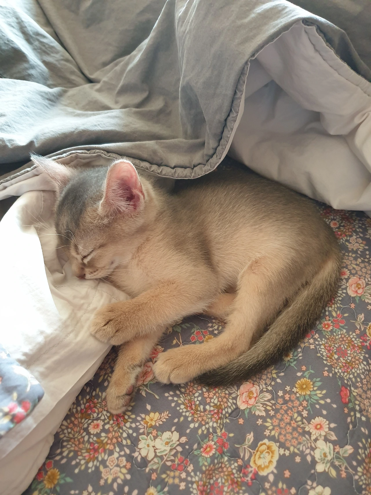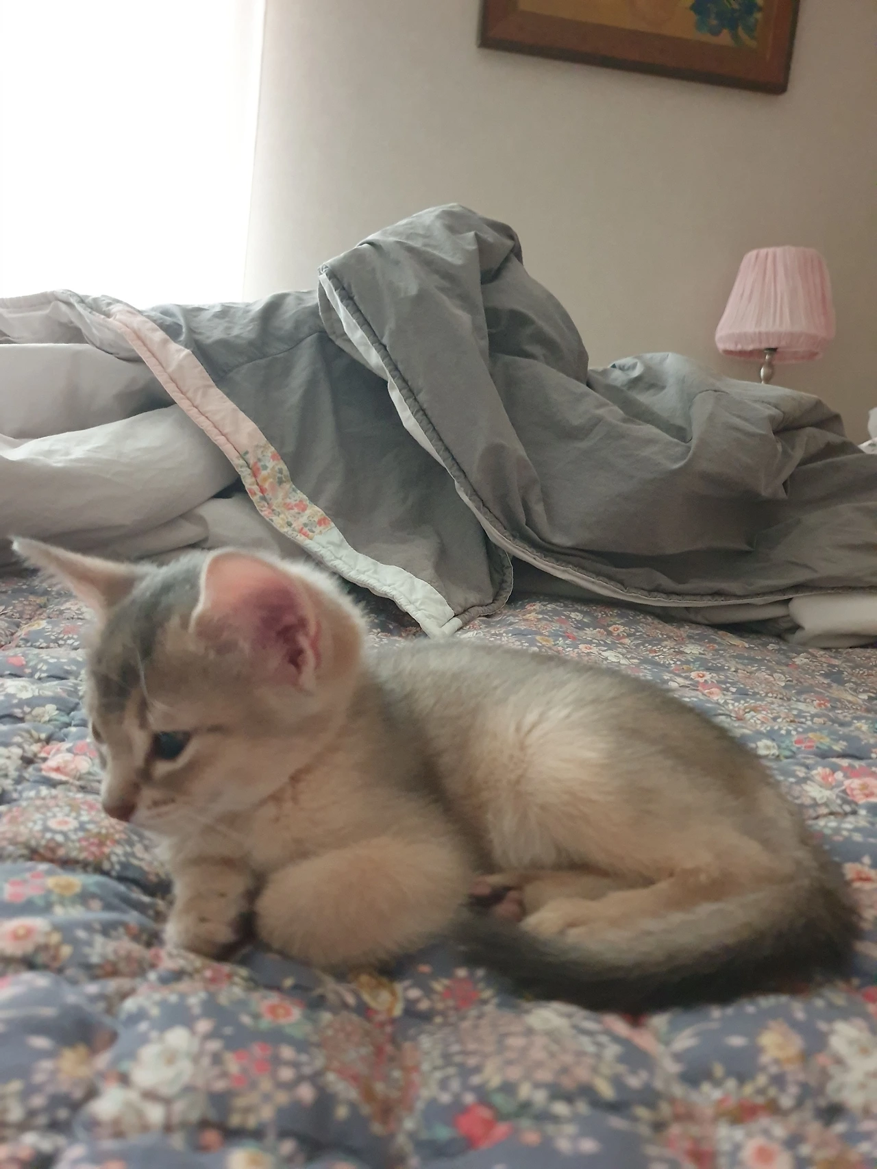 그 작은 몸이 이불 위에 살짝 놓여 있는 모습만으로
