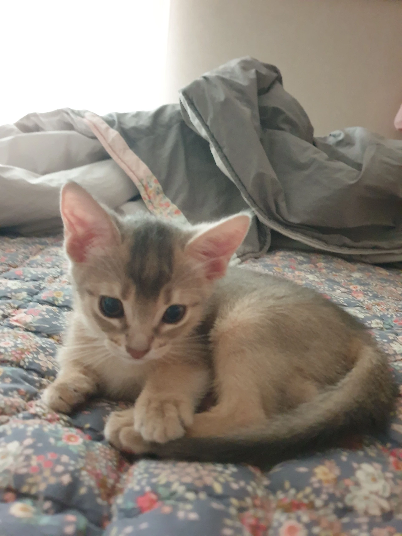 아직도 졸린 눈으로 꼬리를 감고 웅크린 단이는
