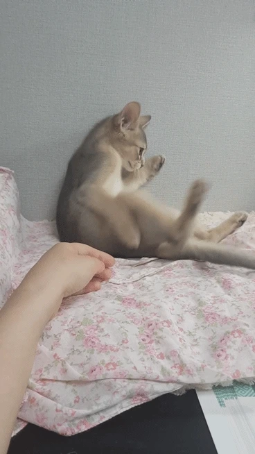 조금 뒹굴다가 제 손을 양양 물고 놀다가,