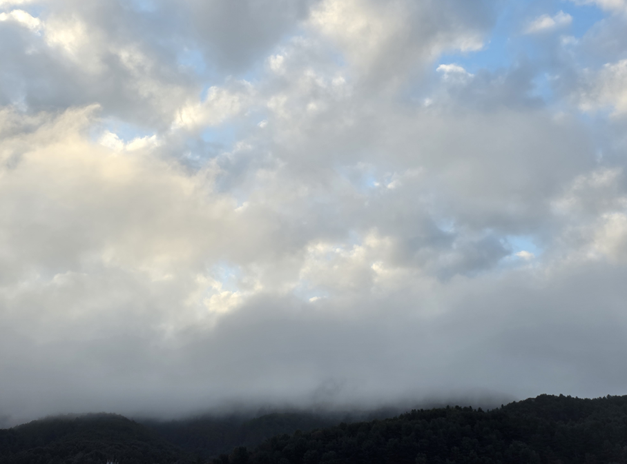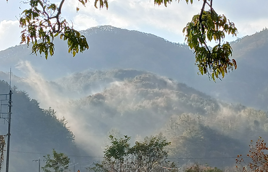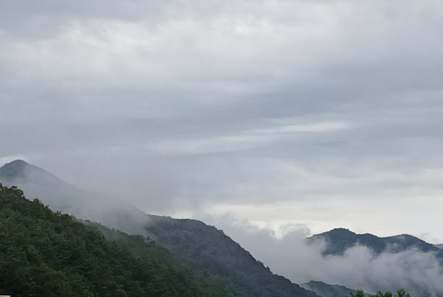바로 앞에 보이는 산이 구름 속에 있으니
