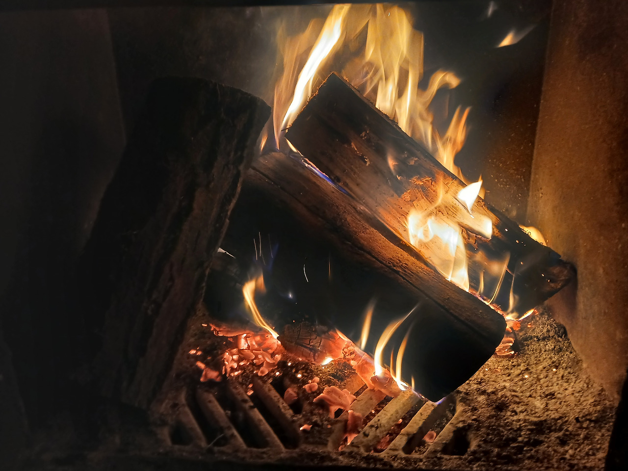 장작앞에서 그저 따뜻함 느끼며 이쁘게만 보다가