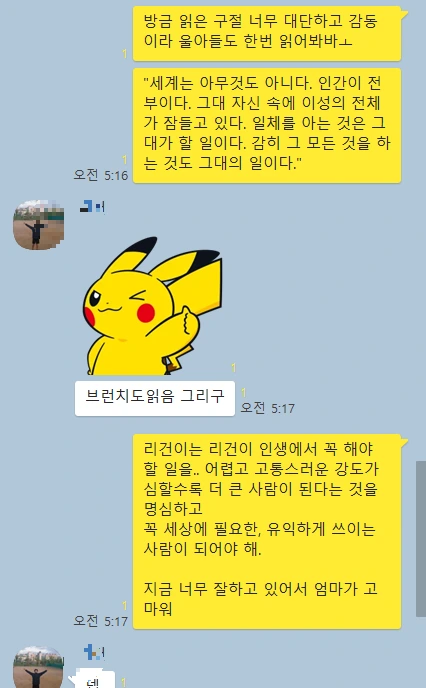 새벽 5시경, 독서모임 중인 나는 서둘러 간단한 대화만 나눈 뒤 얼른 전화를 끊고 카톡으로 대화를 이어갔다.