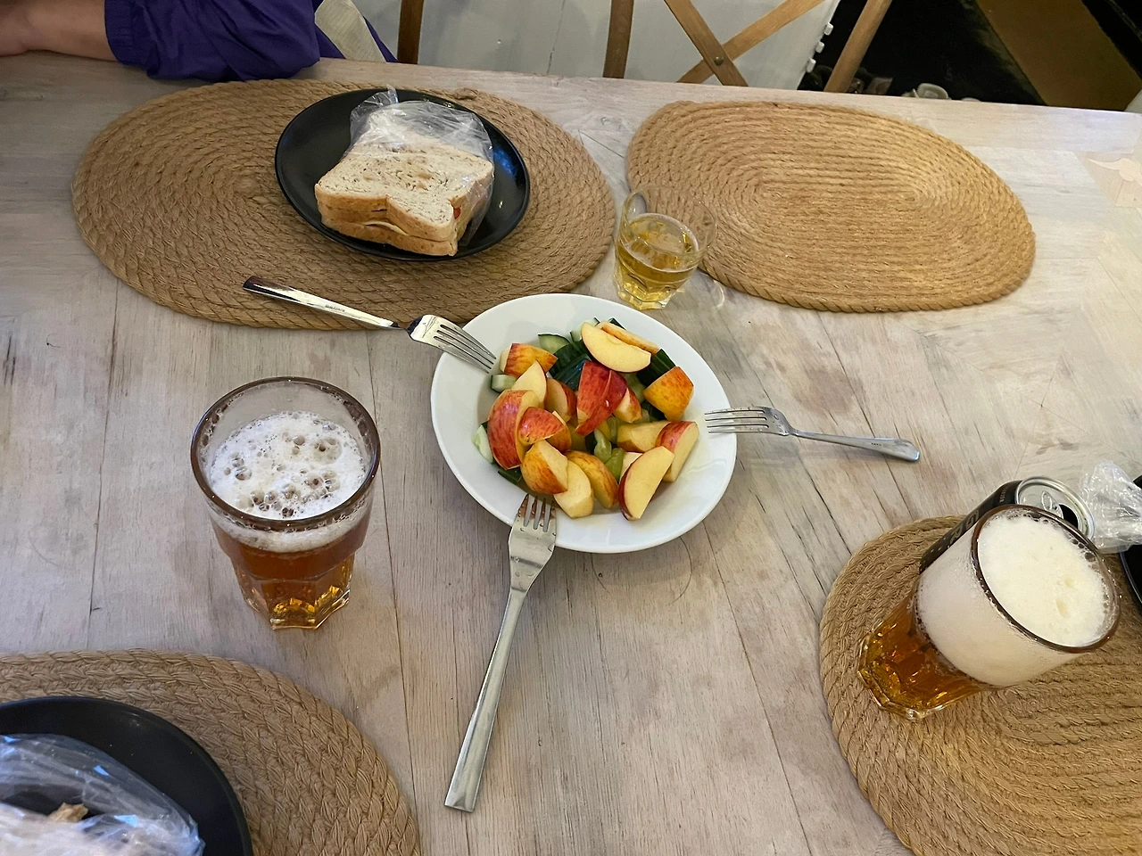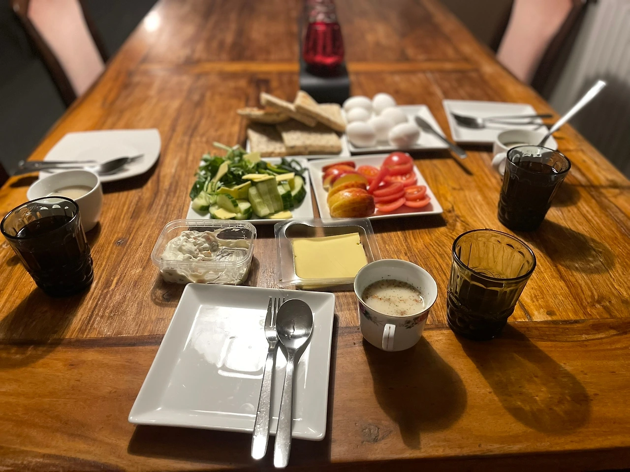 아침은 주로 전날 마트에서 사 온 재료들로 준비했다. 빵, 요거트(스캬르), 계란, 오이, 토마토가 기본이었고, 현지 마트에서 눈에 띄는 식재료들은 궁금한 마음으로 하나둘 사서 시도해 보기도 했다. 아침 식사를 준비하며 점심 도시락도 함께 쌌다.