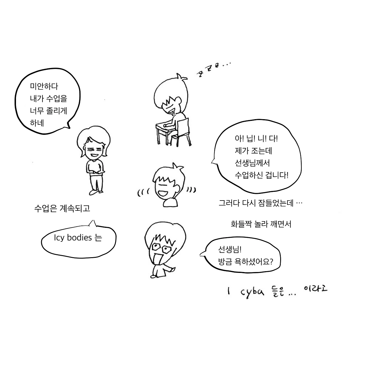 아닙니다! 제가 조는데 선생님께서 수업하신 겁니다