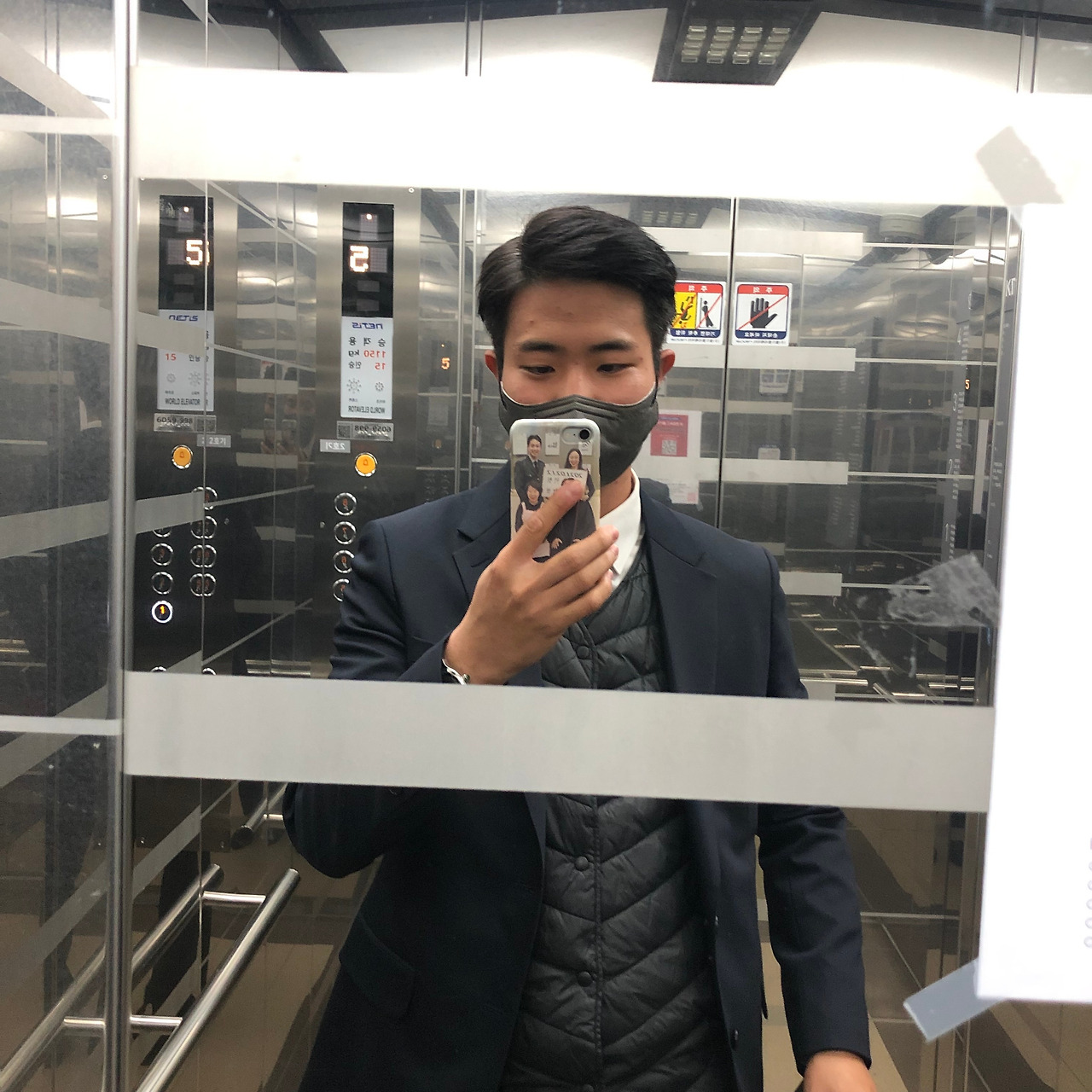 이날 경북대에서 면접을 마치고 부대로 복귀하기 전 엘리베이터에서 찍은 사진.