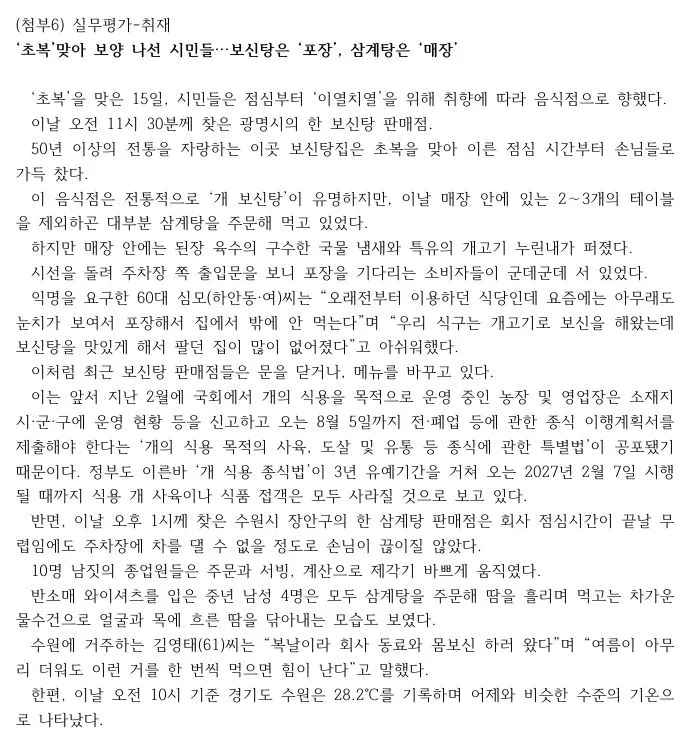 감사하게도 2차 시험 합격 통보를 받았다. 3차 실무역량평가 및 실무면접 일정이 통보됐다. 평일 이틀에 걸쳐 진행된다고 했고, 회사에는 지원 사실을 알리지 않은 상태여서 연차를 활용하여 이틀간 평가에 참석했다. 마찬가지로, 친한 동료 기자도 합격하여 함께 이동하며 정보를 공유했다. 3차 전형 합격자는 28명이었다. 두 명을 뽑는 수원본사, 한 명을 뽑는 인천본사, 1명을 뽑는 편집기자 지원자 모두를 합하여 28명이 남았다. 이때부터는 해 볼만하겠다는 생각이 들었다. 실무 평가는 동일한 주제로 취재 기사를 제한 시간까지 작성하여 제출하는 방식이었다. 주제는 ‘뜨거움’이었다. 후기로 쓸 만한 이야기는 많지만 생략하고, 나는 해당 주제에 대해 “‘초복’ 맞아 보양 나선 시민들…보신탕은 ‘포장’, 삼계탕은 ‘매장’”이라는 제목의 기사를 작성해 제출했다. 다음 날, 해당 언론사 중견 기자들을 중심으로 다대다 실무면접이 진행됐다. 여러 질문들이 있었지만, 장교 경험 등 덕분인지 떨리지도 않았고, 오히려 유머를 겸하여 적절한 답변을 잘해서 면접관들의 미소를 보기도 했던 것 같다. 합격할 것만 같은 분위기 속에서 일상을 보내던 중 합격 소식을 통보받고 최종 임원면접만을 남겨두었다.