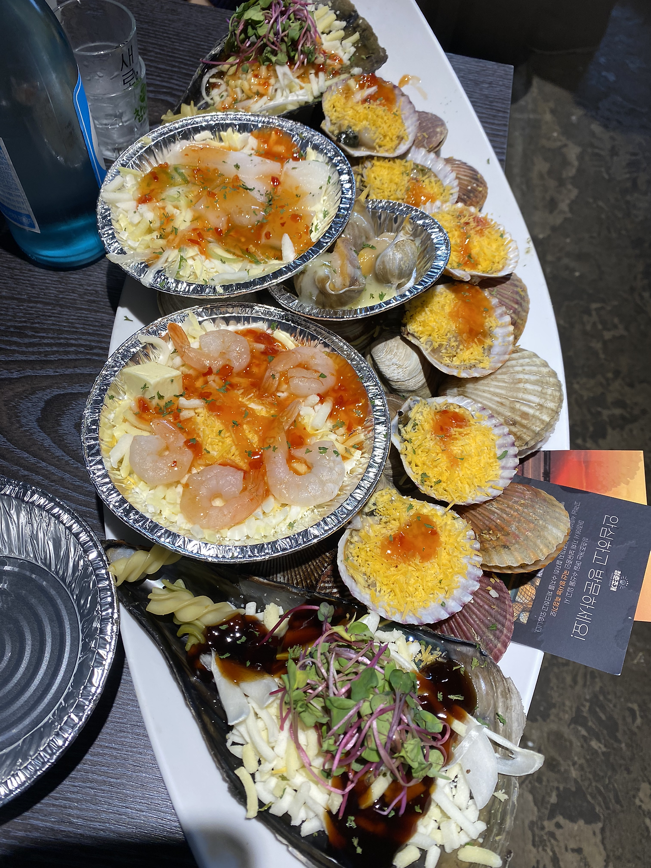 토요일 오전, 오후를 그렇게 아이들 쫓아다니며 체력을 소진했으니 부모들에게도 보상이 필요했다. 그것도 아주 맛있고 원기를 회복해 줄 보상이 필요했다. 그 보상은 월미도에 가면 빽빽하게 들어서 있는 ‘조개구이’ 집 탐방이었다.