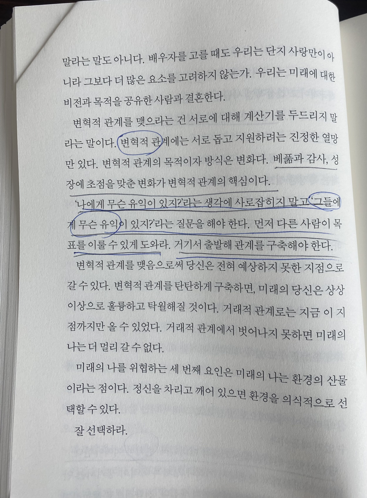 - 접은 페이지뿐만 아니라 추가적으로 파란 펜 밑줄 그을 부분이 보였음.