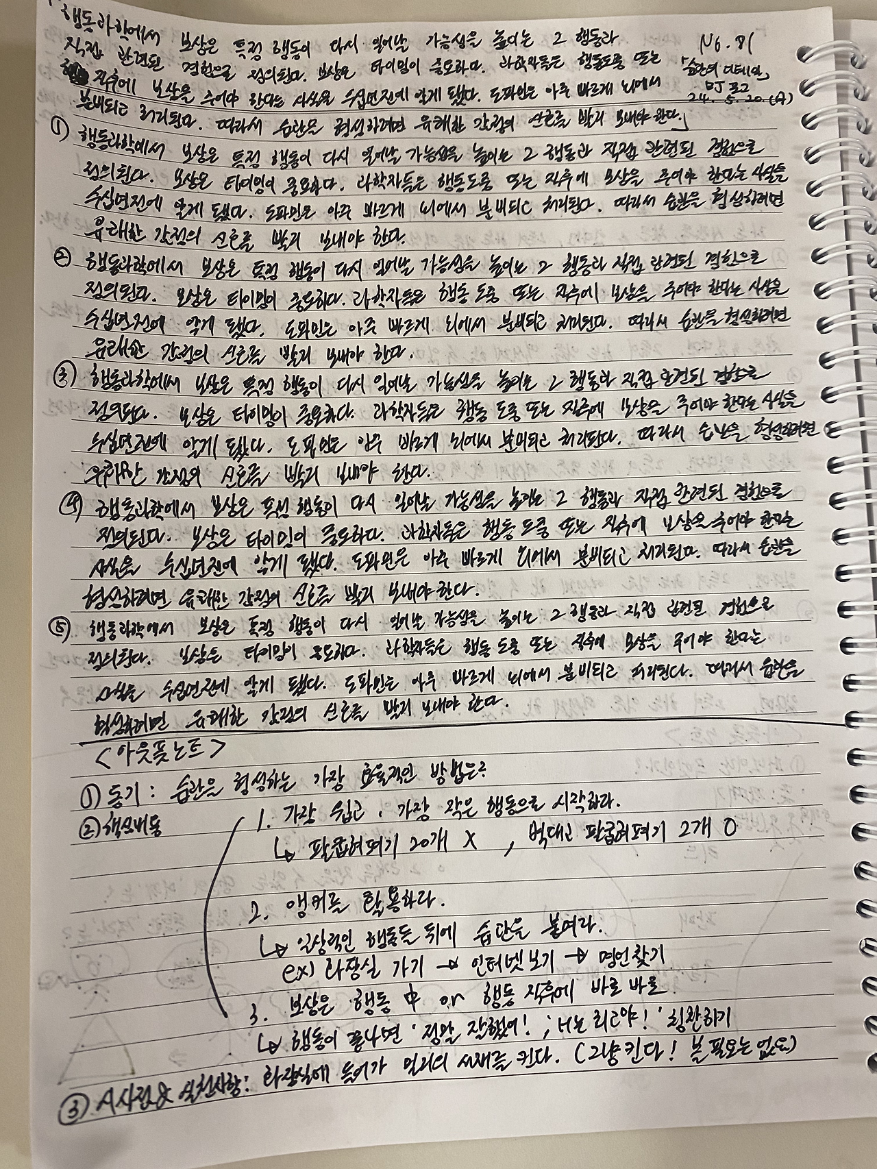 책을 읽고 내용을 잘 이해하면 끝이 아닙니다. 책의 내용을 온전히 내가 받아들이고 실천할 수 있냐? 이게 더 중요한 것 같습니다. 습관의 디테일은 쉽게 쉽게 하라고 합니다. 그러니 너무 부담스럽게 생각하지 마시고 한번 같이 해보시면 어떨까요?