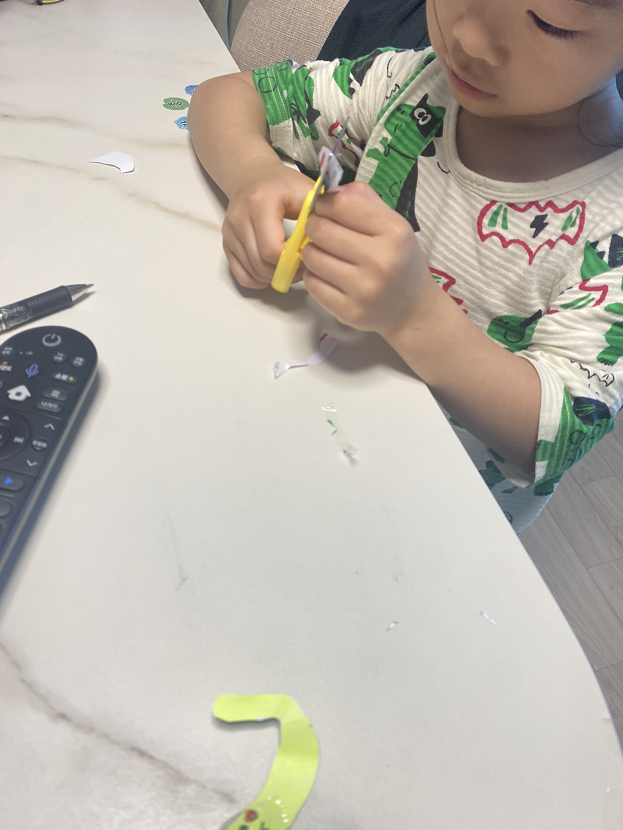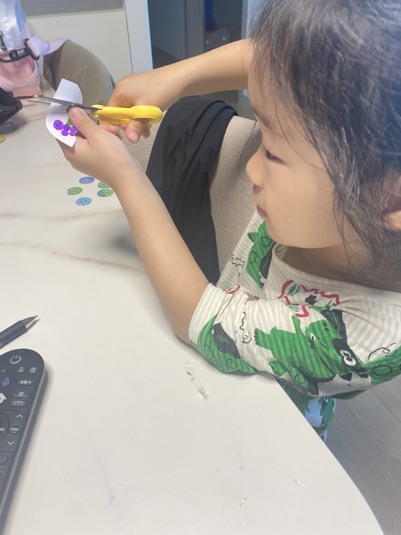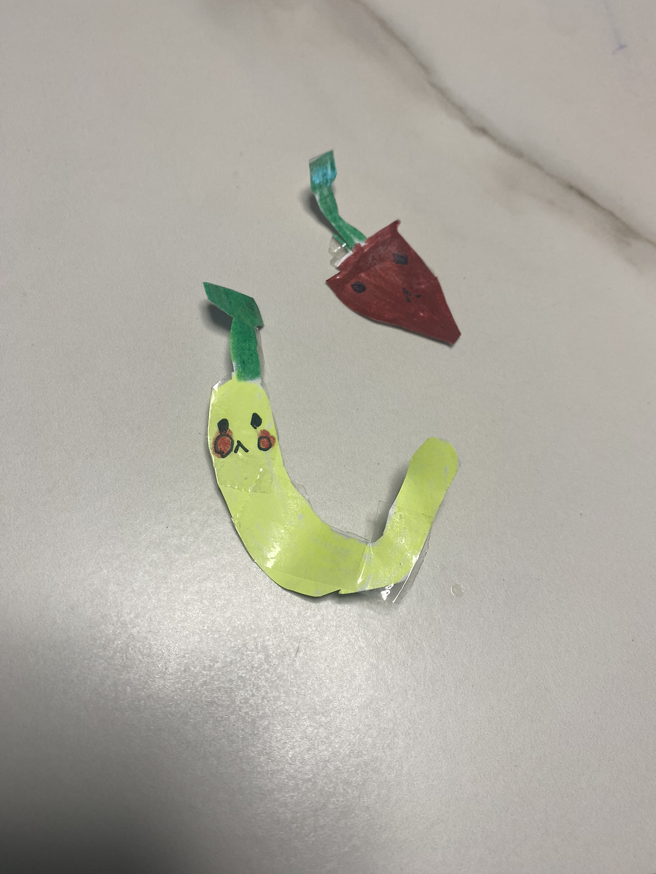 딸이 종이로 예쁜 딸기를 만들어왔습니다. 너무 예쁘다고 칭찬을 해주니 금세 바나나와 포도도 만들어왔네요.