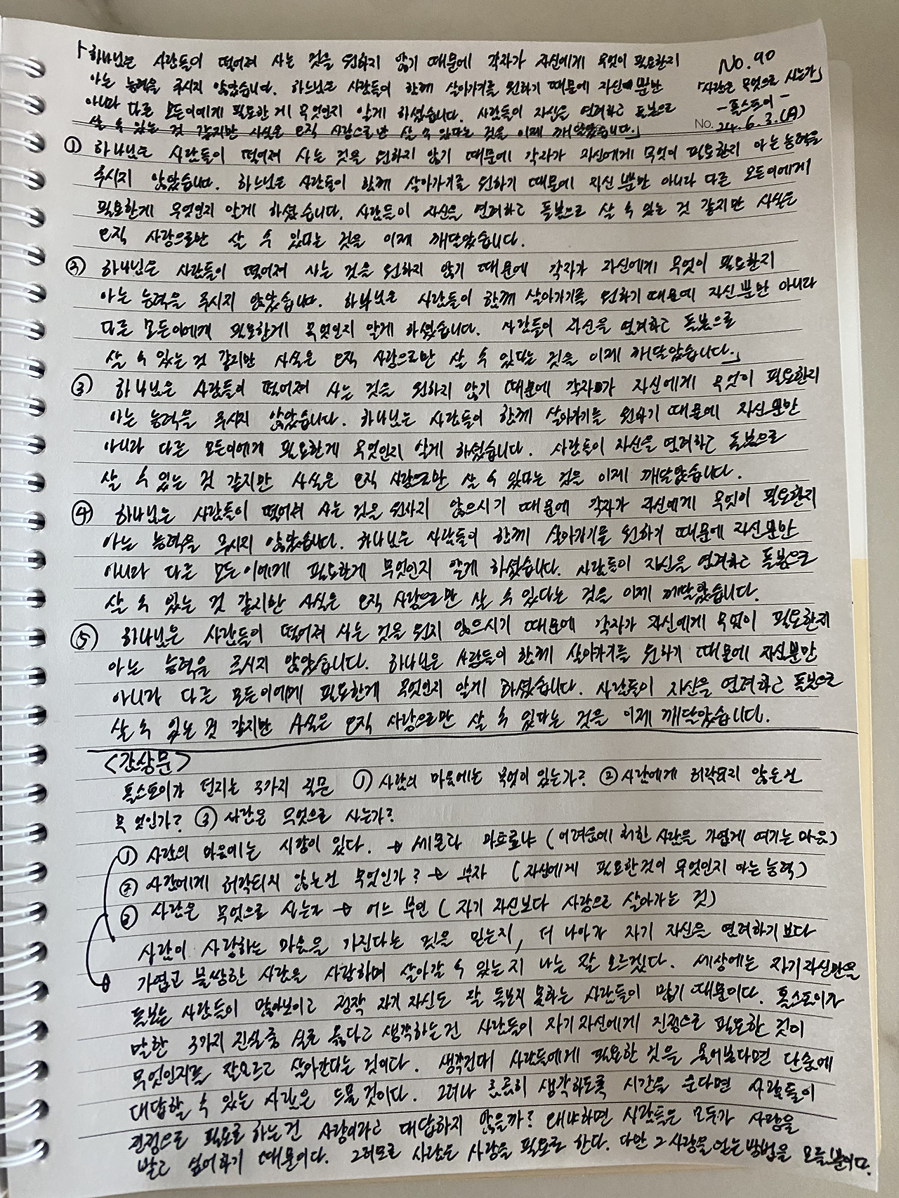 다만 희망은 있습니다. 톨스토이는 "하나님은 사람들이 함께 살아가기를 원하기 때문에 자신뿐만 아니라 다른 모든 이에게 필요한 게 무엇인지 알게 하셨다."라고 소설에서 밝힙니다. 즉 사람들이 자신이 필요한 것은 모르지만 다른 사람이 필요로 하는 게 무엇인지는 생각할 수 있다고 말합니다.