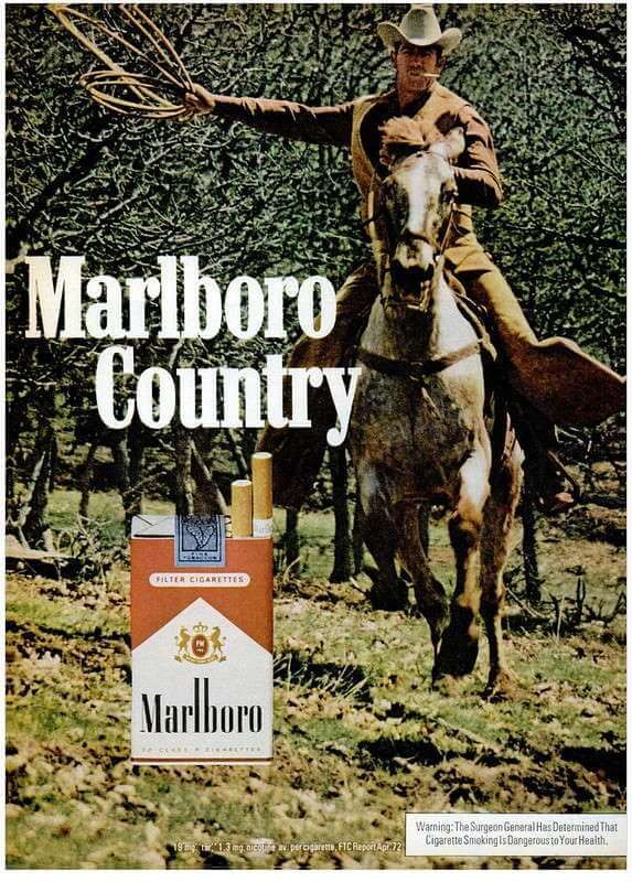 말보로는 남성성을 강조하기 위해 가장 남성적인 '카우보이'를 모델로 썼습니다. 1980년 대에 카우보이가 그렇게 많지는 않았겠지만 당시만 하더라도 '진짜 상남자는 말 타는 카우보이지~'라는 인식이 있었다고 합니다. 말보로의 이미지 마케팅은 통했고, 말보로 = 상남자 공식이 소비자들에게 인식되기 시작합니다.