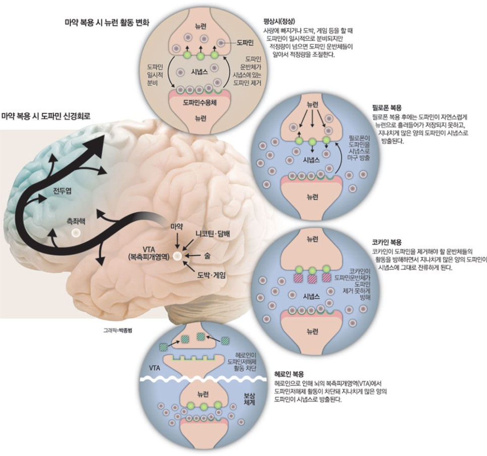 이 모든 원인은 도파민이란 호르몬에서 출발한다. 뇌 안에서 도파민이 분비되면 사람은 기분이 좋아지고 행복감을 느낀다. 하지만 도파민이 나와 행복감을 느낀다고 너무 몰입하다 보면 그것 없이는 살 수 없는 상태인 중독상태에 빠지게 된다. 그래서 도파민에도 좋은 도파민과 나쁜 도파민이 있다. 중독을 일으키는 나쁜 도파민은 즉각적인 도파민 보상을 준다는 특징이 있기 때문에 이를 적절히 사용하지 않으면 중독의 덫에서 벗어날 수 없다.