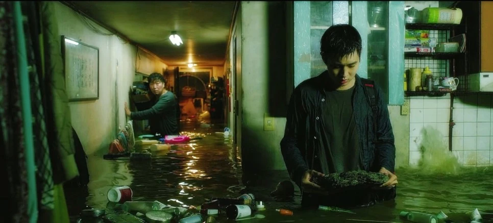 기생충에서 폭우에 대한 부자와 가난한자의 반응