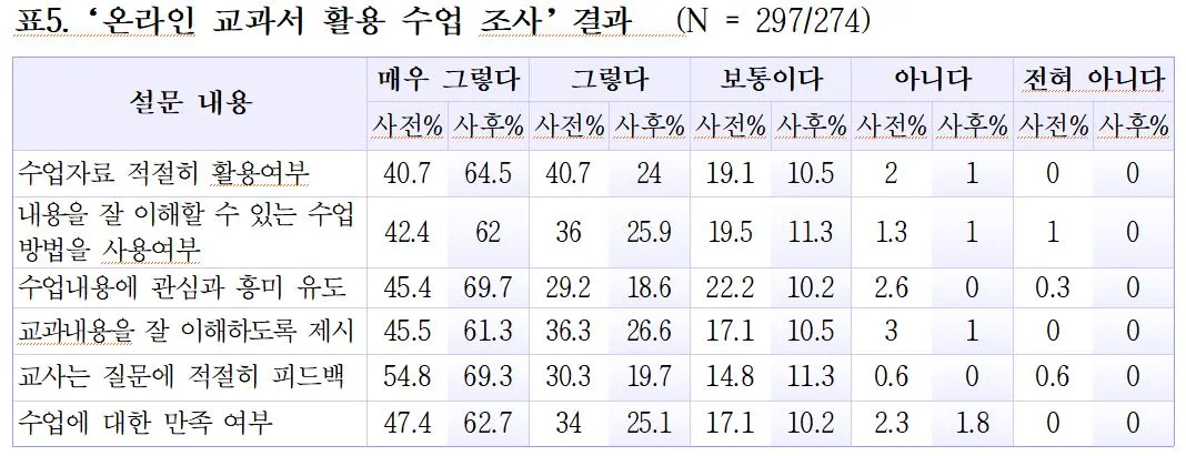 4. 온라인 콘텐츠 활용 교과서 수업 방식의 효과성 분석