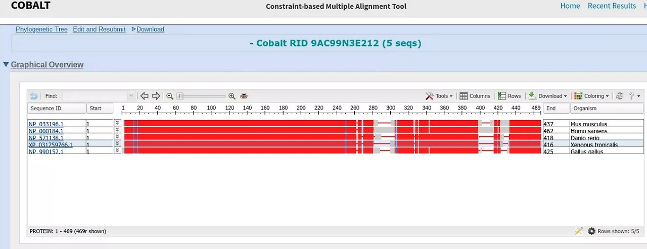<5개의 척추동물에 존재하는 소닉 헤지호그 유전자 유사한 단백질 구조 비교 : NCBI 활용>