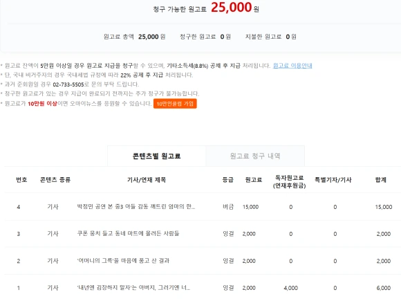 <오마이뉴스>의 원고료. 건물 올릴 때까지 써 보자 ㅎㅎㅎ