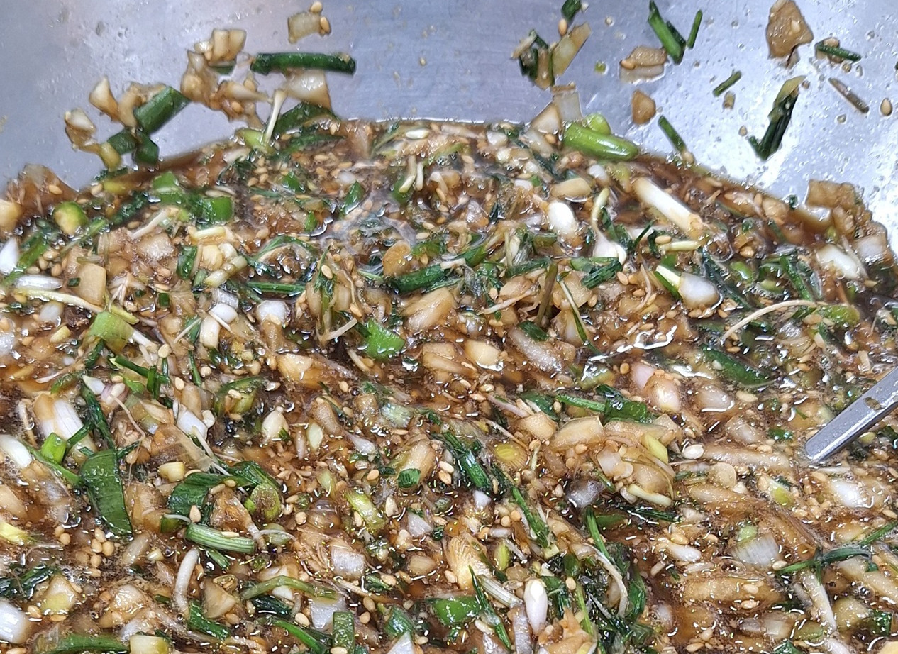 함께 나온 음식들도 훌륭했다. 진짜 식당에서 사 온 것 같은 감자탕도 있었지만, 유독 손이 가지 않았다. 이유는 한 입 떠먹는 순간 알았다. 쑥 된장국의 알싸한 향이 먼저 모든 감각을 깨웠기 때문이다. 쑥은 언제 먹어도 봄을 데려오는 재주가 있다. 풋마늘순 고추장 무침은 달짝지근하면서도 싱그러워 자꾸 손이 갔다.