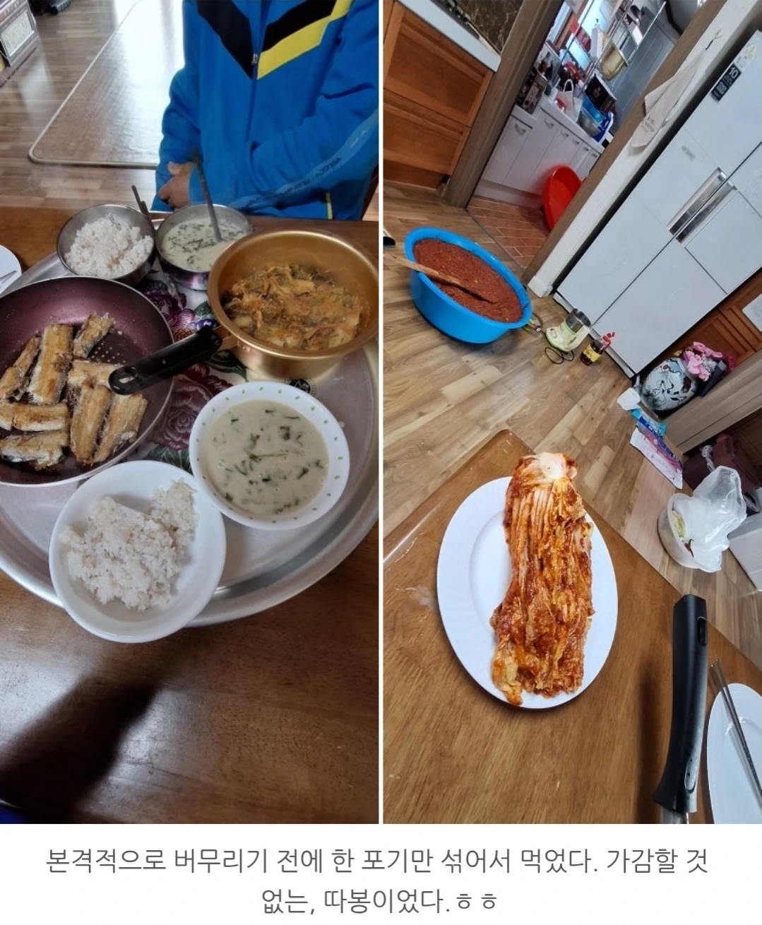 통은 훅훅 줄었지만 마음만은 꽉 찼다. 그리고 학원에서 시험 대비로 공부하는 중학생들과 함께 저녁으로 맛있게 먹었다. 김장은 절대로 만만하게 볼 음식이 아니다. 준비부터 마무리까지... 며칠이나 걸리는 중노동이다.