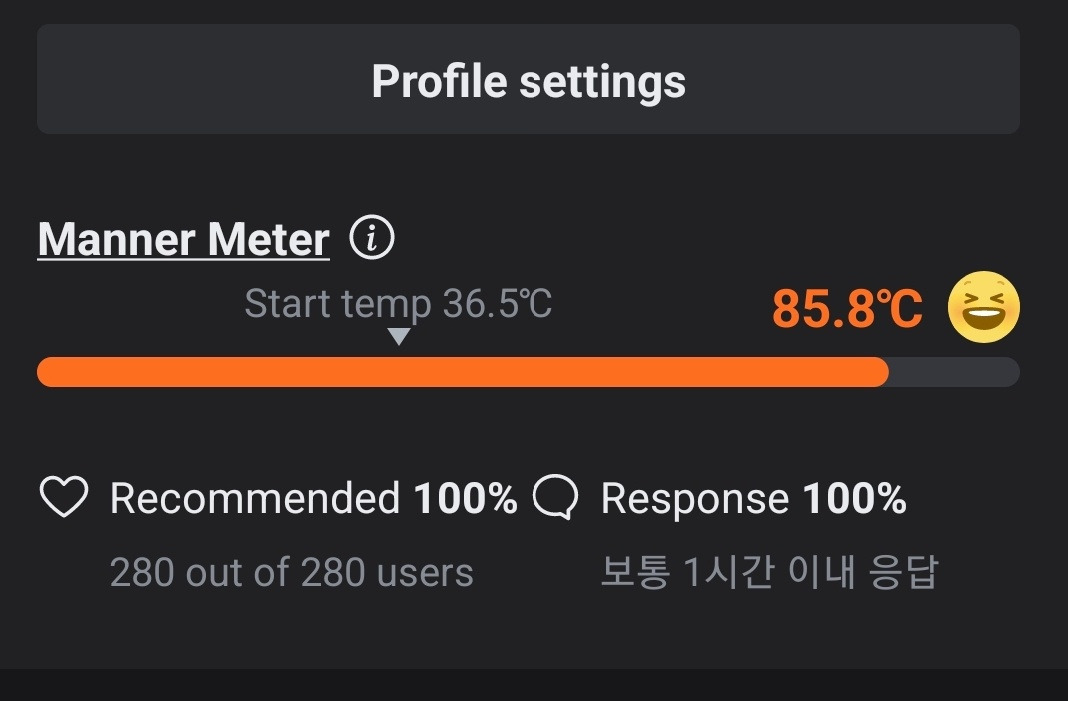 내 당근마켓 온도는 23년 1월 4일 기준 85.8도이다. 그동안 280명의 유저가 나를 추천했고 한달에 적게는 10만 원 많게는 50만 원 정도의 판매수익을 내고 있다.
