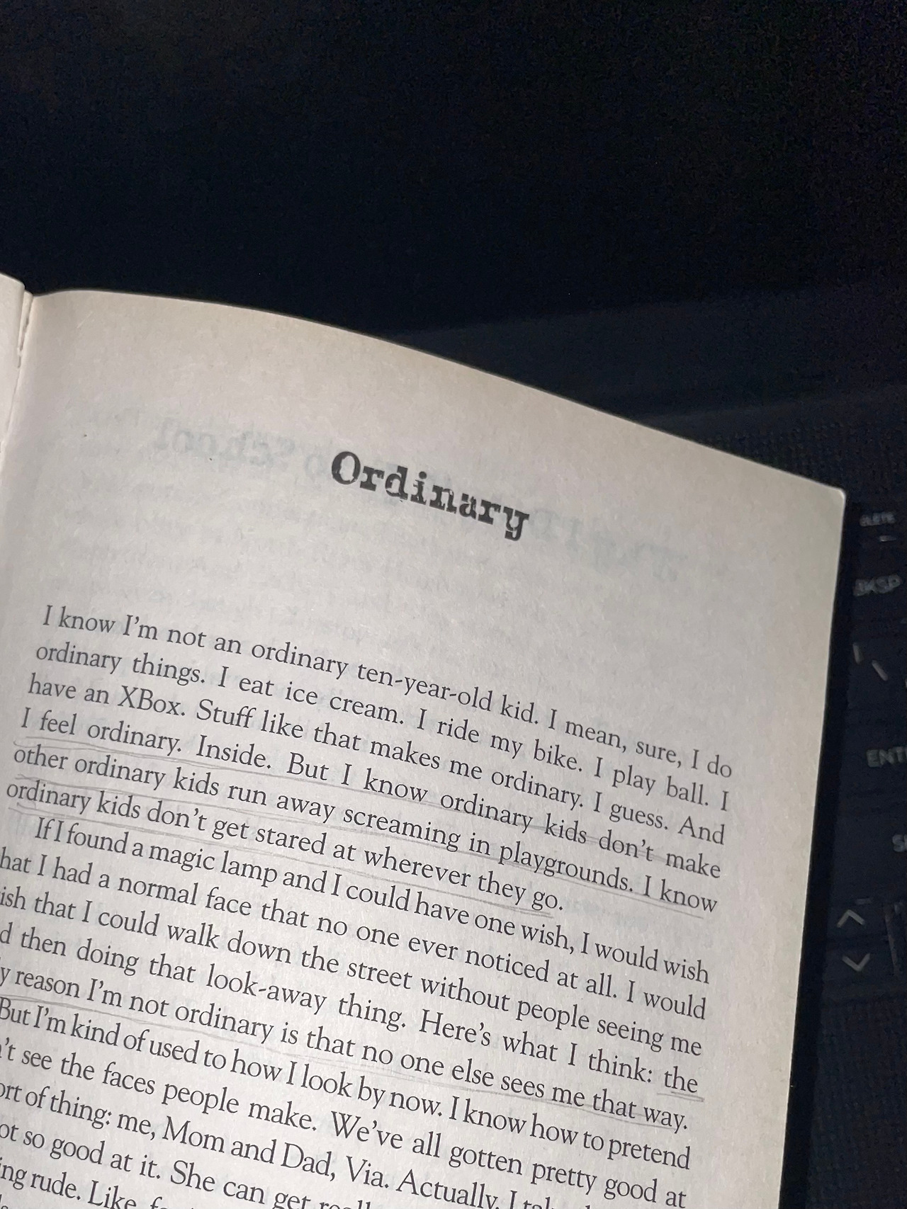 Ordinary는 ‘보통의, 일반적인, 평범한’ 이라는 뜻을 지니고 있다. 이 책이 ’Ordinay'로 시작하는 이유는 August가 자신을 나타내는 단어이기를 간절히 바라기 때문이지 않을까 생각한다. 책 중 August는 이런 말을 한다.