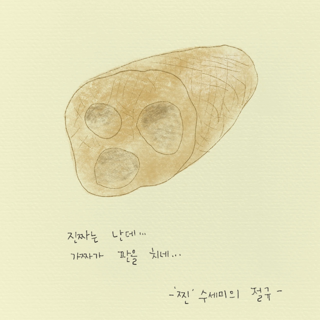결혼을 하고, 본격적으로 집에서 밥을 해 먹으면서 '한살림'이라는 협동조합을 알게 되었다. 생산자와 소비자가 모두 조합원이라 좋은 무농약 또는 유기농산물을 합리적인 가격에 구입할 수 있어서 오랫동안 이용하고 있다. 몇 년 전 한살림 매장에 장을 보러 갔을 때 신기하게 생긴 것을 보게 되었다. 베이지색의 내 팔뚝만 한 길이의 얇은 섬유질이 얼기설기 얽혀있는 그것의 정체는 '수세미'였다. 실제로 한 때는 열매의 모습이었던 것을 증명하듯 한쪽은 좁고 아래로 갈수록 살짝 뚱뚱해지는 형태에, 가운데에는 큰 기공이 3개 정도 있었다. 그리고 바짝 마른 갈색의 씨앗들이 여기저기 붙어있었다. 그 길로 하나를 집어 들어 장바구니에 넣었다. 집에 와서 칼로 숭덩숭덩 3등분을 해서 수세미 대신 사용해봤다. 아니지, 원래 수세미가 이거니까... 수세미 대신이란 표현은 어울리지 않는다. 반짝이 수세미 대신 원래 수세미를 사용해봤다.라는 표현이 더 맞는 표현이겠지