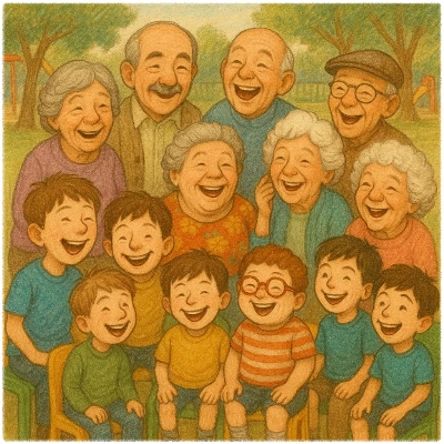 시간이 좀 지나자, 노인들도 아이들도 평소처럼 떠들기 시작했다. 노인들은 아이들의 재잘거림에 함박웃음들을 보이며 “오냐오냐” “그럼 그럼” “오구구구” “이쁜 강아지들” 이런저런 감탄사들을 제각각 연발했다. 어느새 최영감은 애들 손에 사탕과 젤리를 한 움큼씩 집어 주며 ‘허허허 고놈들’하며 바람소리가 쉿 쉿 섞인 듯한 웃음소리를 연신 내었다.