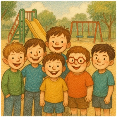 아이들은 일단 놀이터에 들어가서 놀 수 있겠다는 생각에 다들 파란 티셔츠 아이를 격려하느라 바빴다. 아이는 아이들의 응원에 등 떠밀려 머리를 긁적이며 앞장서 걸었다. 아이들은 쫄래쫄래 뒤따랐다.